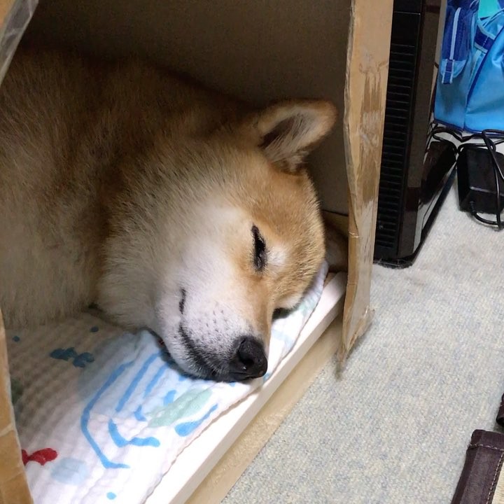 Wow wow tonight✨🐶💤✨やっぱり我が家が一番だよね〜 #少々狭いけど #ダンボールだけど #はみ出ちゃうけど #パパに作ってもらったの #ワンルーム #寝言選手権 #marutaro FFF; ダンボールだけど パパに作ってもらったの はみ出ちゃうけど ワンルーム 寝言選手権 少々狭いけど