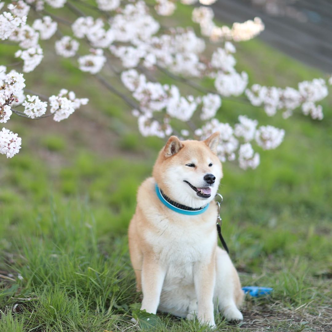 Let’s take a little rest under the Sakura🌸🐶🌸おはまる〜*(^o^)/* ちょっとここでひと休み。 #ええ眺めじゃ #休憩中 #隣空いてますよ #marutaro ええ眺めじゃ 休憩中 隣空いてますよ