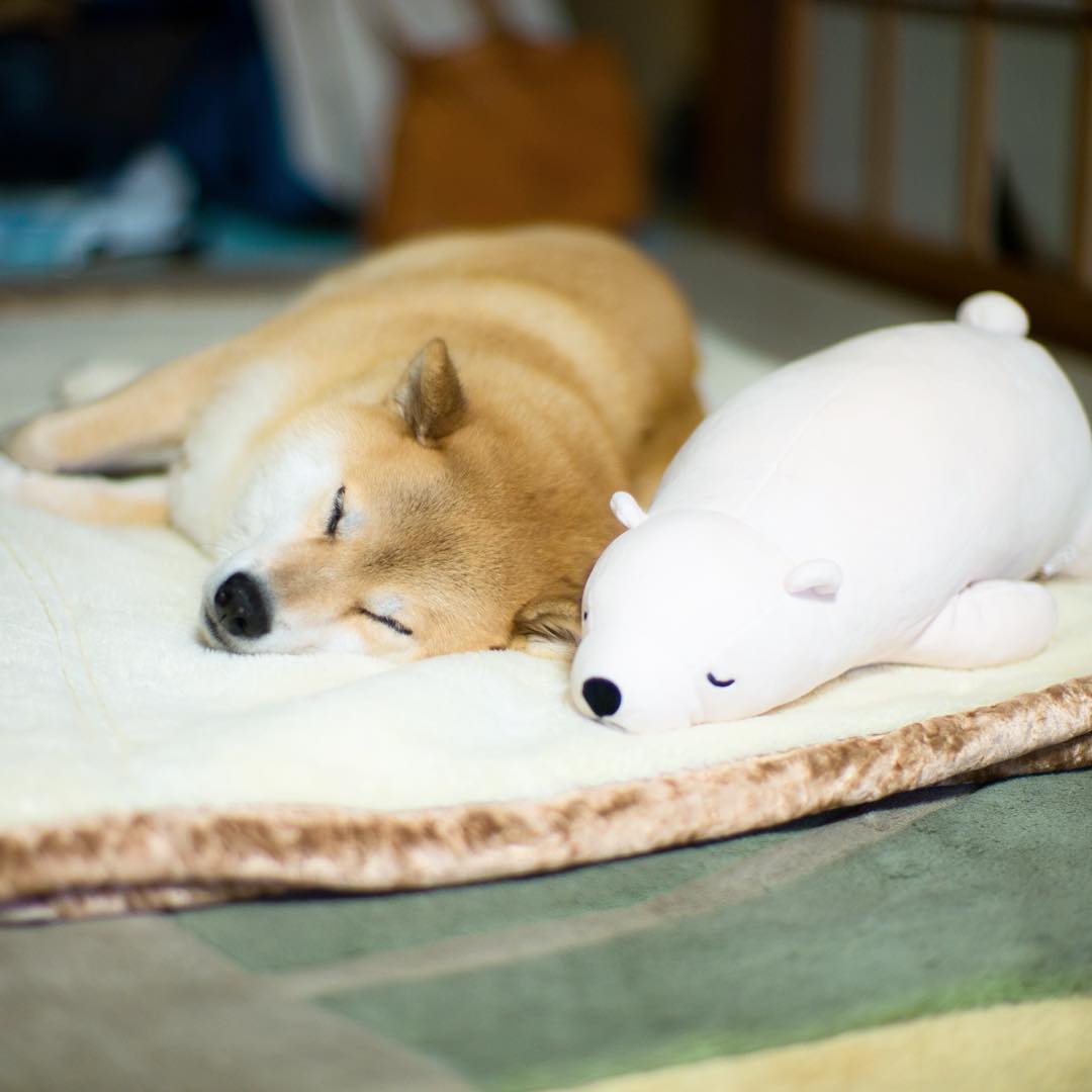 Good night boys 🐶🐻また明日ね〜 おやまる。 #やわらかいシロクマ #ずっと触ってたい #フニフニ