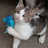 あらら〜怒ってますね🤭それとこれとは違う😤と言ってそう💦うちの子たちもシャンプーするの大変です😰まるで虐待してるみたいな声で泣くので、こちらも外に聞こえるようにシャンプーしてることを叫びます🤣白猫ちゃんはやっぱり汚れ気になりますか?